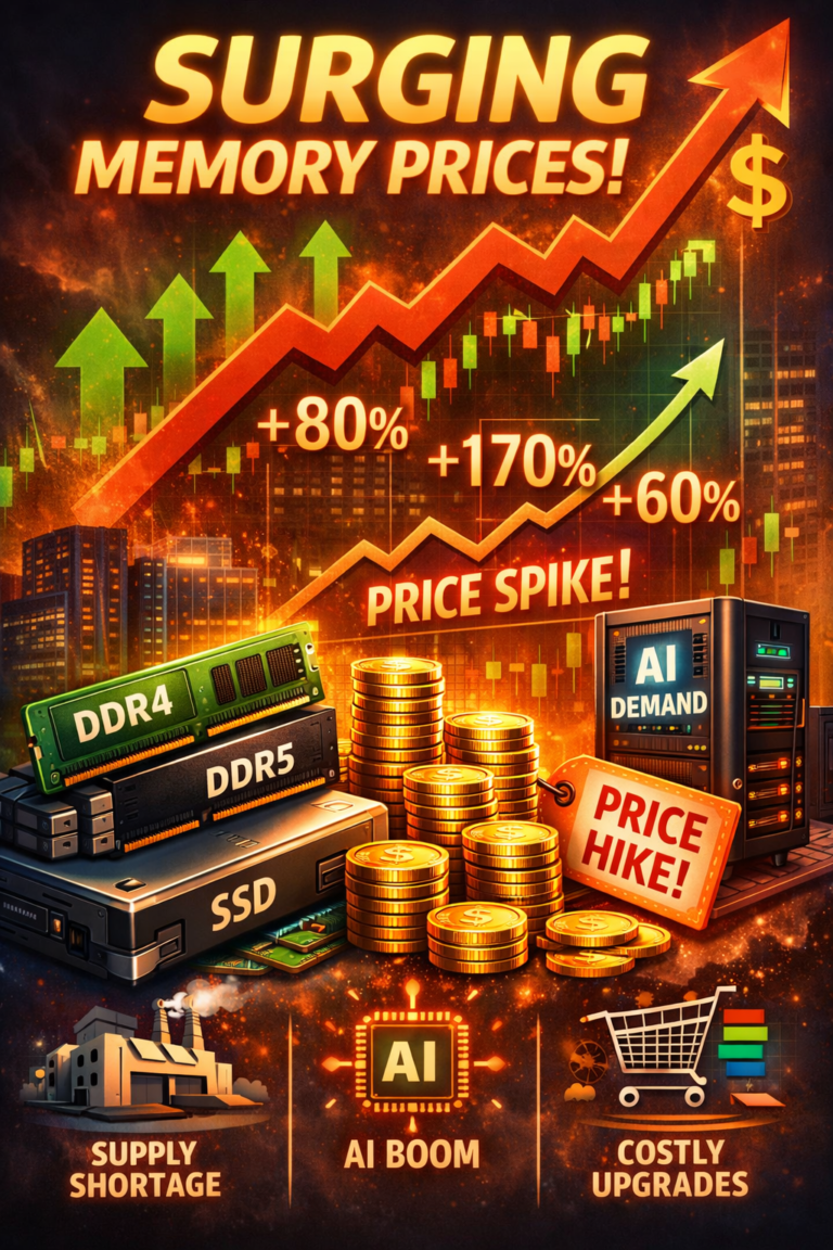 Computer memory—primarily DRAM (RAM) and NAND flash (storage like SSDs)—has always been one of the most volatile segments of the technology market. But in 2025–2026, the industry has entered one of its most dramatic pricing cycles in decades, driven by artificial intelligence, supply constraints, and structural shifts in manufacturing. This article explores the current state of memory prices, why they’ve surged, and what the future may hold. The Current State of Memory Prices (2025–2026) The past year has seen explosive increases in memory pricing, affecting everything from gaming PCs to enterprise data centers. Key Data Points DRAM prices increased over...Read More